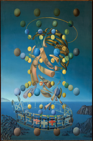 Mit Velázquez, dessen Bart er sogar übernimmt und dessen Faszination für Las Meninas er teilt, erforscht Dalí Raum, Licht und Luft als malerische Materie. Mit Vermeer, dem Meister der Ruhe und Präzision, entdeckt er in der Spitzenklöpplerin die logarithmische Spirale, die zum Schlüssel seiner „nuklearen Mystik“ wird – einer Verbindung von moderner Wissenschaft und Spiritualität. Mit Raffael schließlich tritt er in einen Dialog über Perfektion und Harmonie, indem er religiöse Themen mit atomaren Geometrien und in Partikel zerlegten Figuren neu interpretiert – dort, wo die Renaissance auf die zeitgenössische Physik trifft.