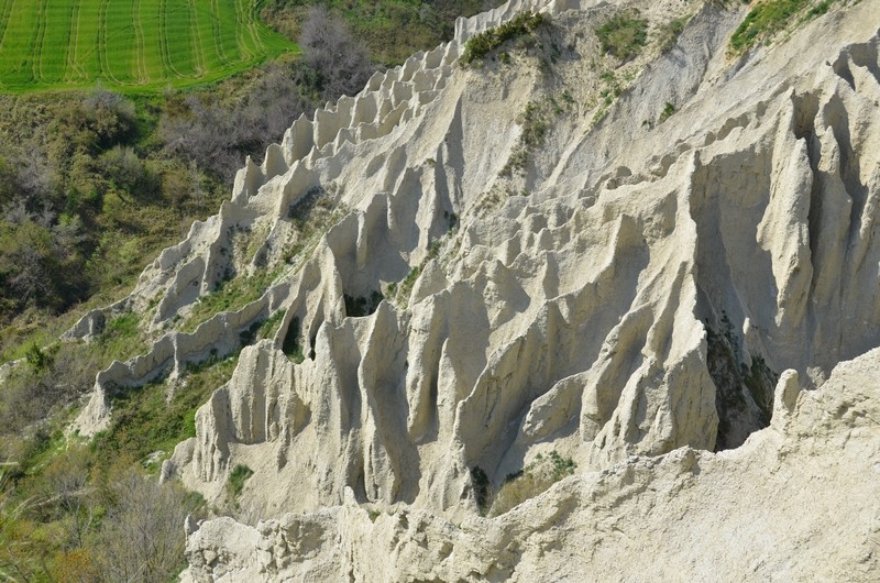 Ripantransone – Durch die Glaswand des Degustationsraum im Weingut “Le Caniette” bewundert man vor einem Glas Passerina das Panorama der Berge der Marken im Frühjahr. Das sanft hügelige Gelände ist gepflügt, und die grünen Weizenfelder sind mit gelben Blumen bedeckt. Weinberge und Olivenhaine sind nach geometrischen Figuren arrangiert worden. Die blaue Linie an der Unterseite des Panoramas ist das Meer, umgeben von einem leichten Nebel.