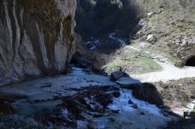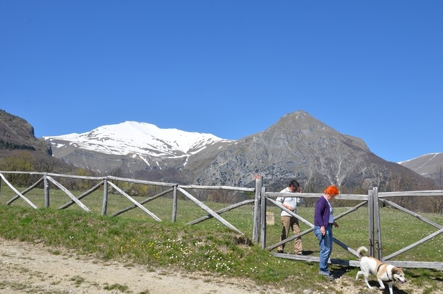 Die Wanderung startet in der Nähe der Gola dell’Infernaccio (Höllenschlucht). Der Frühling hat vor Kurzem begonnen: Ein grüner Rasen ist mit gelbem Löwenzahn bedeckt. Auf dem Hintergrund blickt man auf die Stadt Montefortino. In der Gola dell’infernaccio sind viele kleine Madonnenstatuen eingemauert, vielleicht, um den Namen dieses Ortes zu bannen. Ein schwieriger Pfad, um ihn mit den Herden durchzuqueren, aber ein einfacher Wanderweg voller Emotionen mit seiner wilden Schönheit.